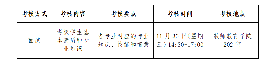 1.教师教育学院成立2022-2023学年转专业考核工作组,成员由学院党委书记、院长、党委副书记、副院长、专业负责人、教研室主任组成,具体实施教师教育学院本学年转专业考核工作。
