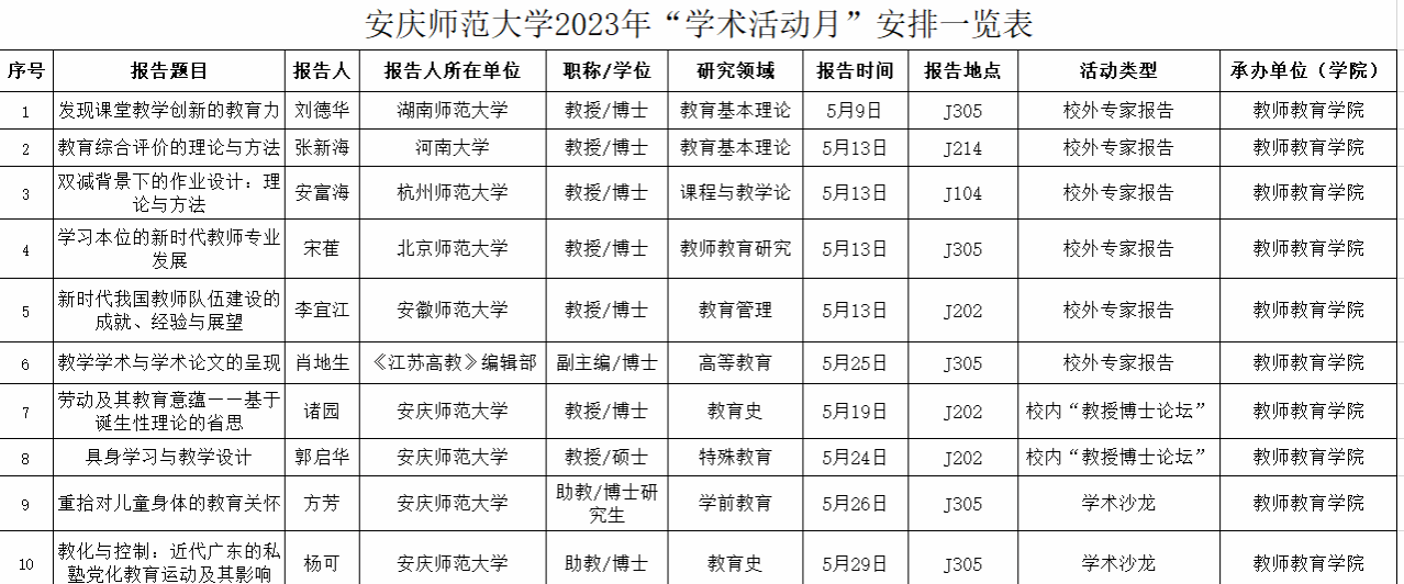 “学术活动月”活动安排一览表