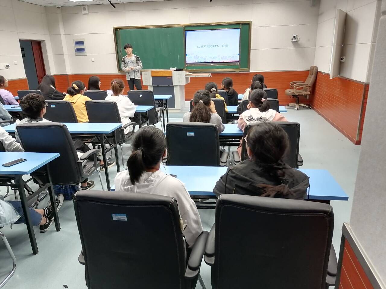 随后,2019级范静怡同学详细分享了她在中国大学生计算机设计大赛和安徽省高等学校师范生教学技能竞赛选拔赛上的参赛经验和学习经历,2019级齐铭、许程娟两位同学也就一年来的在校学习、生活等方面的要点进行了分享,回答了2020级新生关注的热点问题。