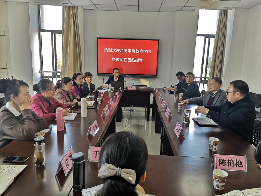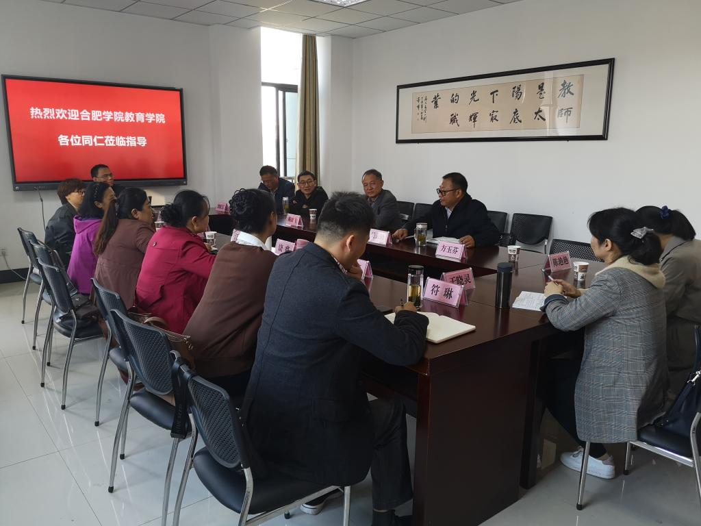 11月16日,合肥学院教育学院院长江芳等一行10人来我院进行了为期半天的小学教育专业认证工作学习交流。双方举行了小学教育专业认证工作交流会,我院党委书记曹长德、院长吴云助、小学教育专业负责人李义胜和小教专业教师参加了交流会。会议由吴云助主持。