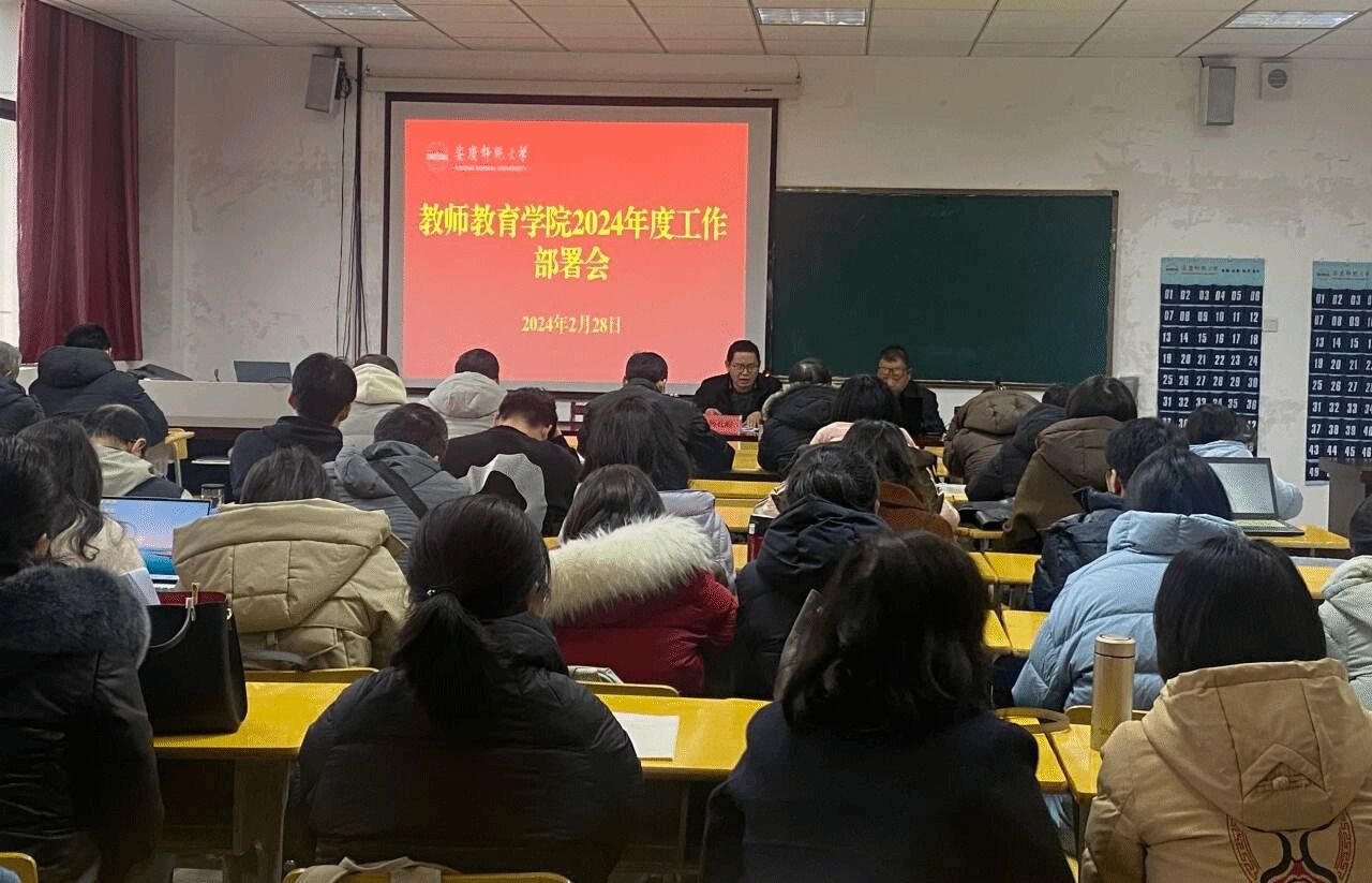 2月28日下午,教师教育学院召开2024年度工作部署会。全体教职员工参加会议。