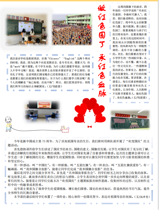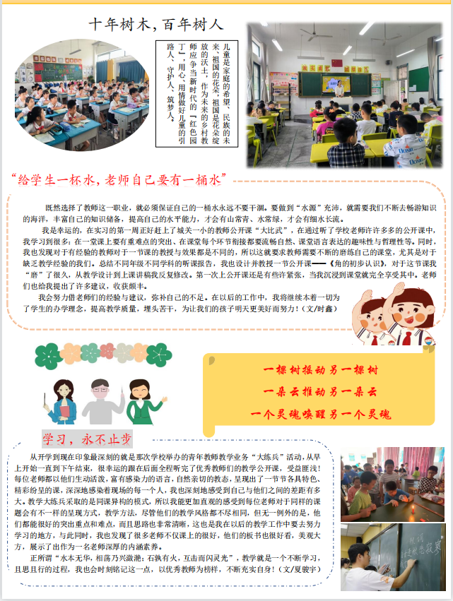 教师教育学院坚持教师教育卓越化培养导向,努力成为中小学卓越教师培养的策源地、安徽教师教育改革的先行者、引领大别山地区教育发展的智力库。现将近期“红色园丁”教育实习(诸园导师组)情况汇报如下。