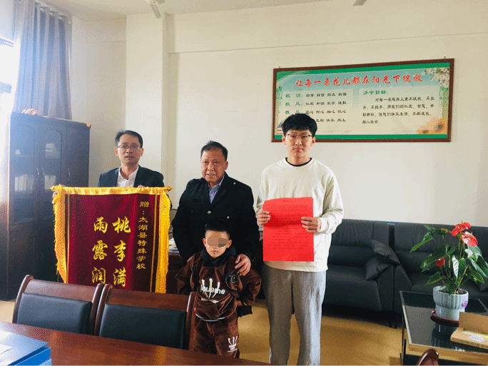 10月31日,在太湖县特殊教育学校实习的我院20019级特殊教育专业学生黎浩收到来自学生家长的一封感谢信和一面锦旗。信中,学生家长感谢了黎浩同学对学生的耐心教育和无私付出。