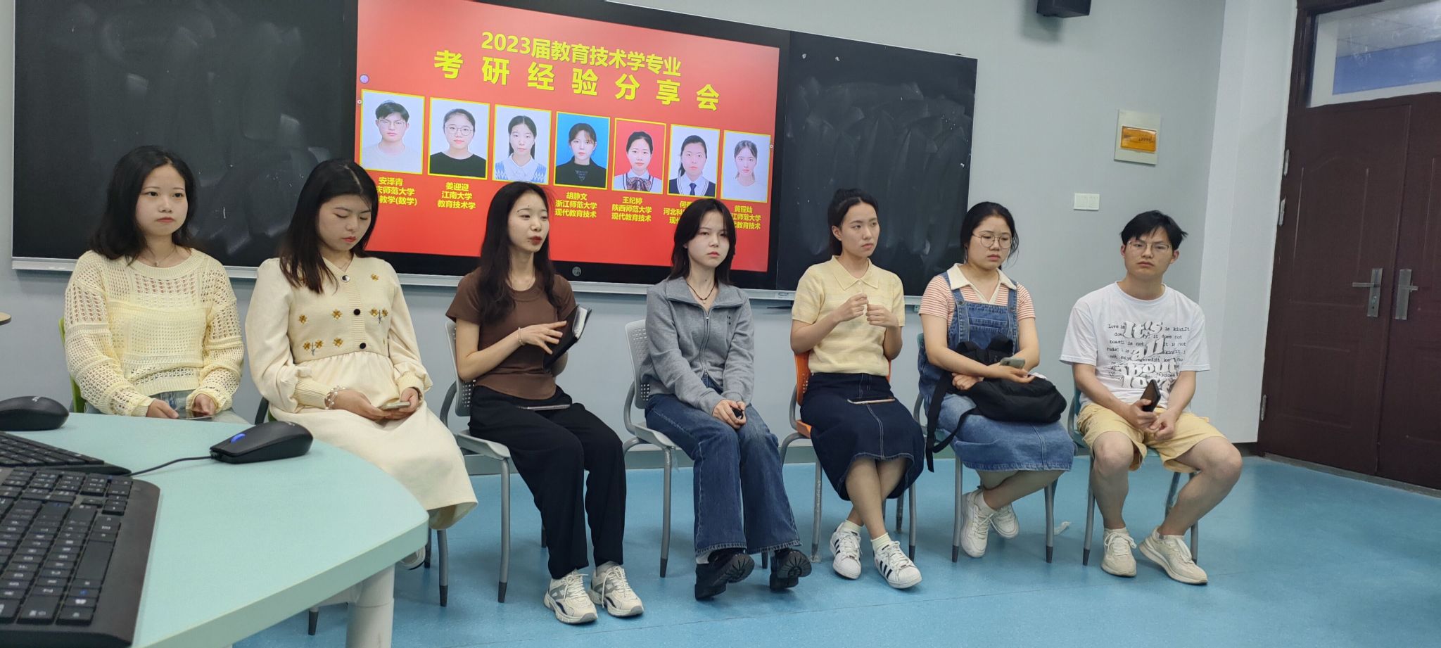 4月21日,我院教育技术系在D206教室举行考研经验分享交流会。会议邀请2019级教育技术学专业七名拟录取研究生的同学作考研经验分享,活动吸引了2020级、2021级、2022级共70余名学生参与。活动由韦伟老师主持。