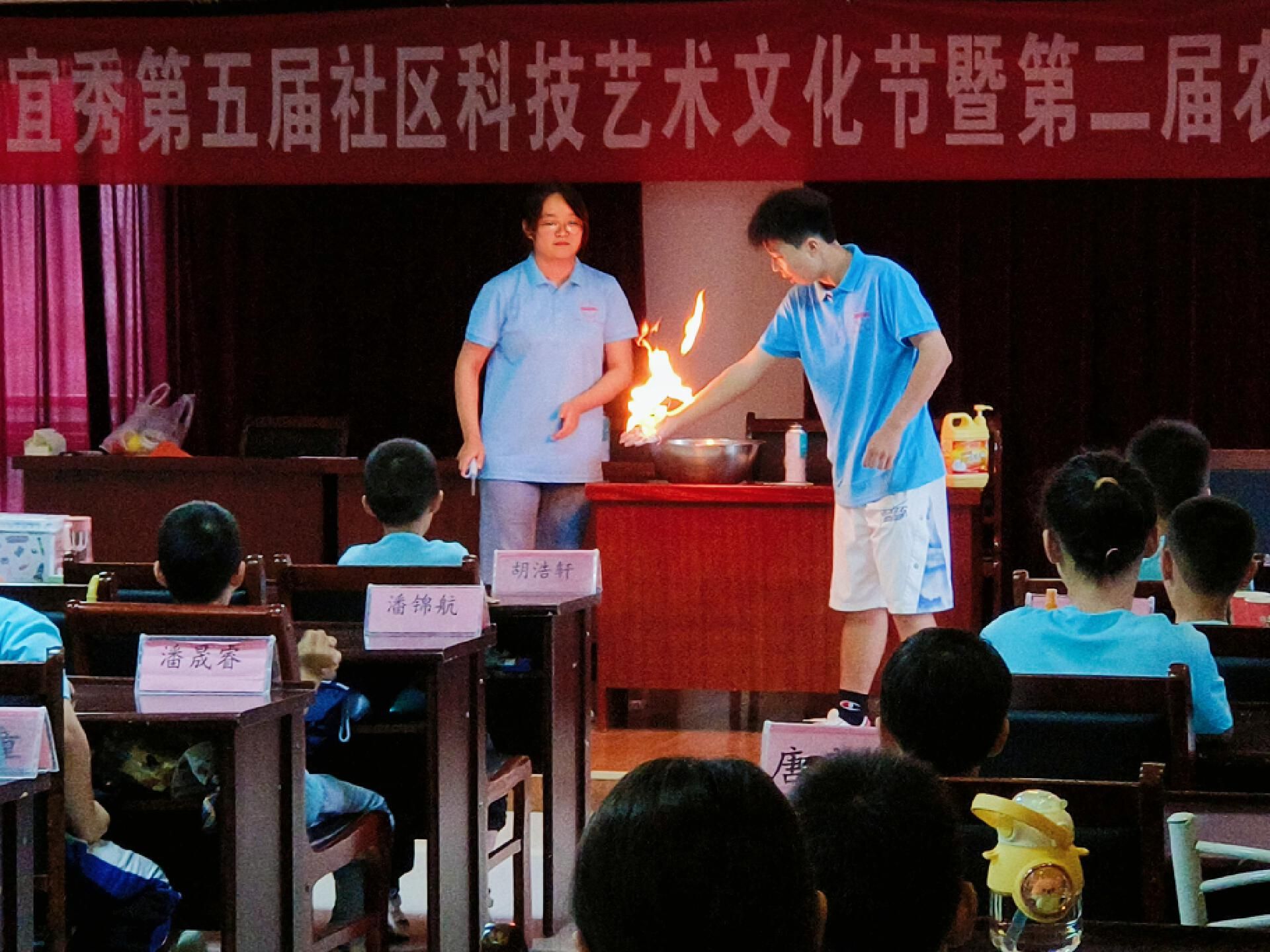 7月8日,英国365集团教师教育学院“科学筑梦,智引未来”教育关爱实践团带领2023宜秀科技艺术文化节43名小朋友开展第三节特色化学实践课程——“火焰掌”,让孩子们零距离感受科学的神奇魅力。