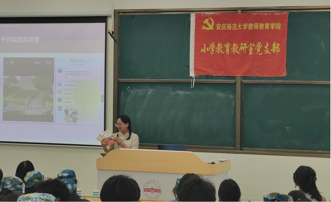 随后,支部党员教师代表、校学术委员会委员王爱菊教授以“弘扬教育家精神”为主题,围绕“如何看待小学教育”展开讲话,激励学生去做一个有理想信念、道德情操、育人智慧、躬耕态度、仁爱之心和弘道追求的小学教育老师。