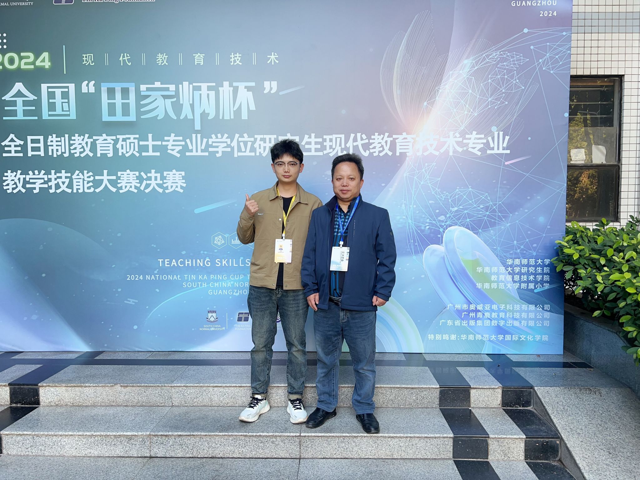 11月8日-10日,2024年全国“田家炳”现代教育技术专业教育硕士教学技能大赛决赛在广东广州华南师范大学举行。经大赛初赛评审专家评审,我院由万士全指导的史俊(2023级)顺利入围决赛并赴华南师范大学进行决赛。指导教师万士全陪同前往。