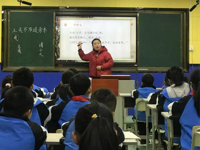 研究生首先观摩朝阳路小学吴园园老师《王戎不取道旁李》一课的现场教学。吴老师引经据典,通过阅读、讨论、交流将“王戎不取道旁李”的经典故事生动再现。接着,宜秀区大桥街道办事处叶祠小学刘云鹏老师讲授《司马光》一课。刘老师采用互动式教学法鼓励学生主动提问。他结合角色扮演等形式让小学生们身临其境。两位教师综合运用了多元化的教学策略,整个教学流程流畅,课堂气氛活跃,教学效果优秀。
