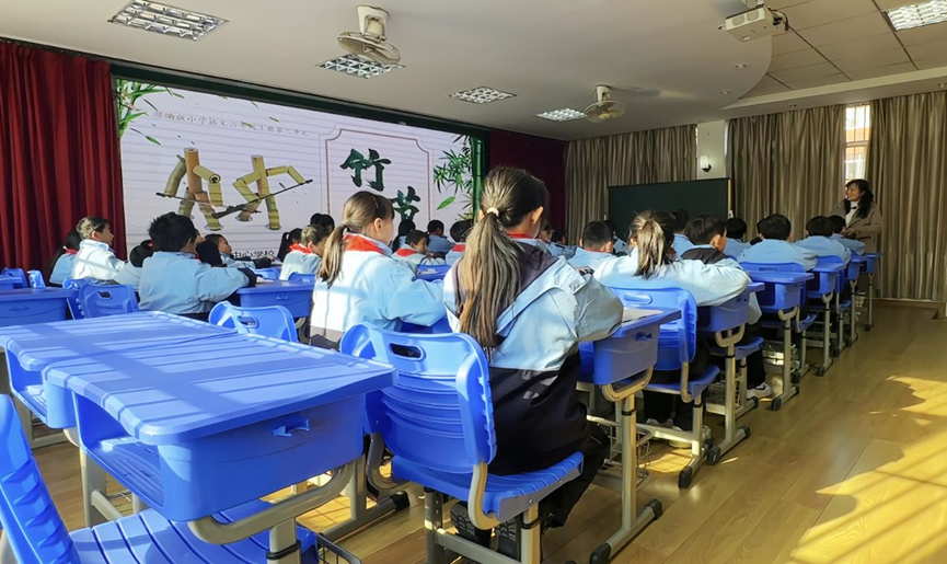 接着,王芳老师呈现人教版六年级语文《竹节人》示范课。王老师通过任务驱动教学,与同学们一道探索了各种语文阅读策略:通过任务一竹节人制作的玩法和指南,教会同学们做圈画、提取关键信息以及整合上下文等阅读技巧和方法;通过任务二体会传统玩具给人们带来的乐趣及小组合作讨论、趣味表演等形式,帮助同学们体会制作竹节人的各项乐趣。整节公开课教学过程流畅,课堂气氛活跃,教学效果显著。