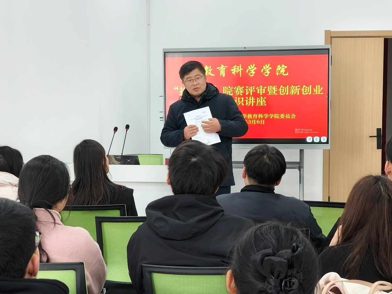 3月6日,我院于一站式学生社区阶梯教室开展“挑战杯”院赛评审暨创新创业知识讲座,由校团委副书记严峻主讲,院团委副书记姚强诚主持、多名指导教师、辅导员及百名学生观摩学习。