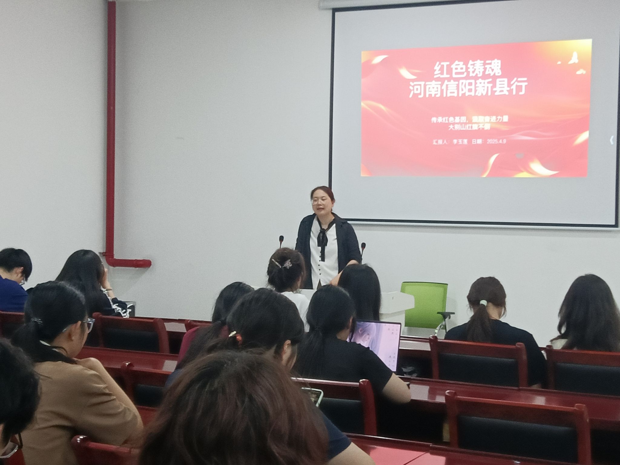 4月9日晚18:30,我院在龙山校区东门“一站式”学生社区学生事务服务中心二楼多功能厅,成功举办了“红色铸魂”河南信阳新县行分享会。本次活动旨在通过分享师生在新县的实践学习经历,进一步弘扬红色文化,传承革命精神,激励广大师生坚定理想信念,厚植家国情怀。