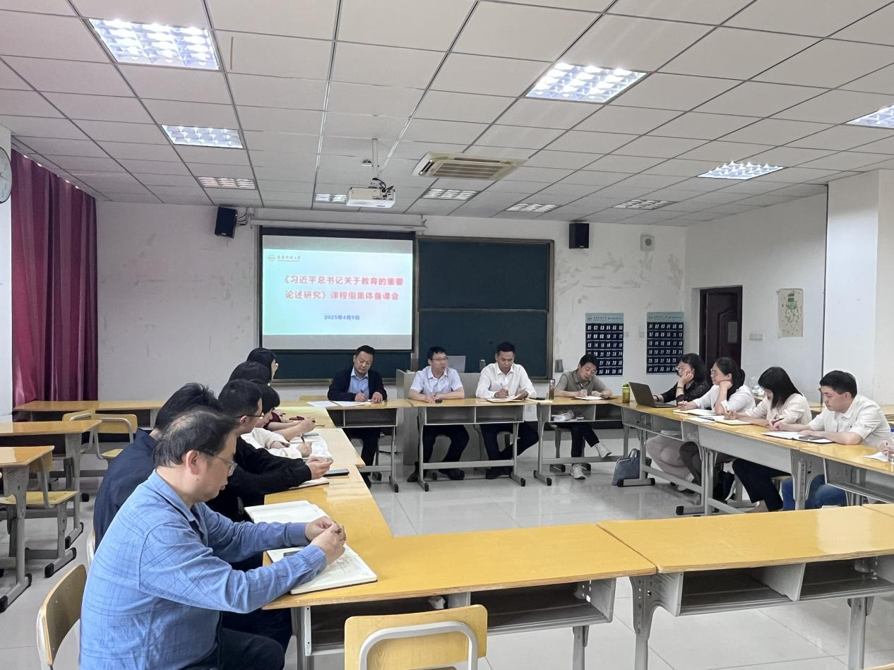 4月9日下午,“习近平总书记关于教育的重要论述”课程组在我院219教室召开集体备课会。备课会由课程负责人许世平主持,学院副院长王皓宇和课程组教师参会、教务处处长潘锦云到会并讲话。