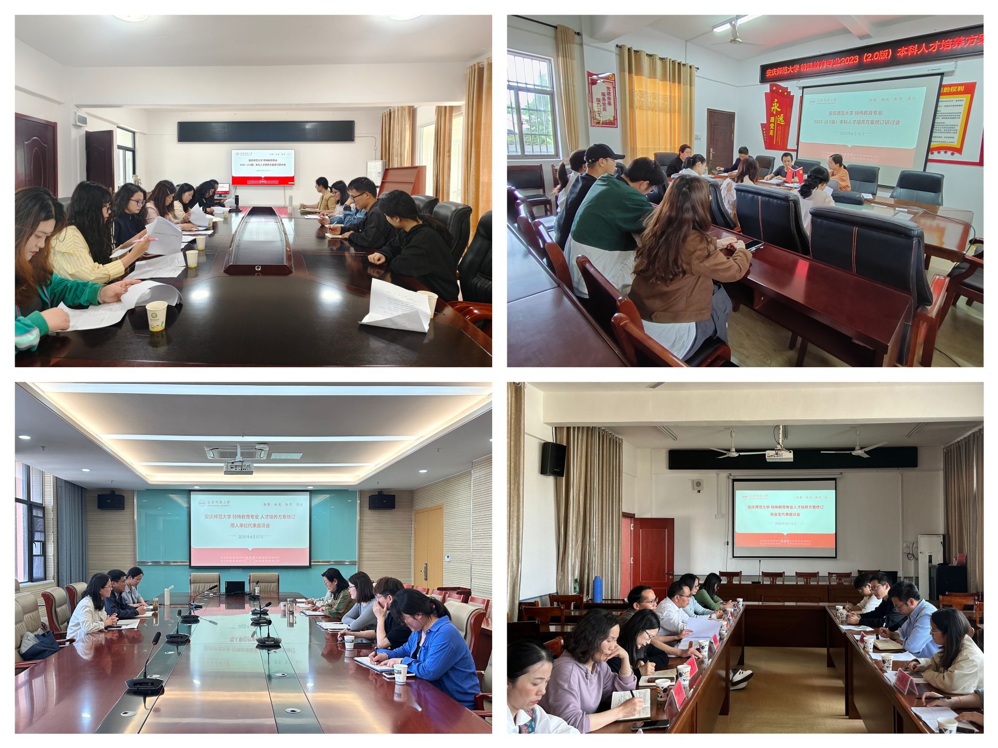 4月14日至19日,特殊教育专业组织专业教师分批次前往合肥特殊教育中心、潜山市特殊教育学校、太湖县特殊教育学校及怀宁县特殊教育中心,开展新一轮人才培养方案修订调研活动,并同步推进2025年上半年的实习指导工作。此次活动旨在全面掌握学生实习成效,广泛听取合作单位的意见与建议,促进专业建设与行业需求的精准对接。