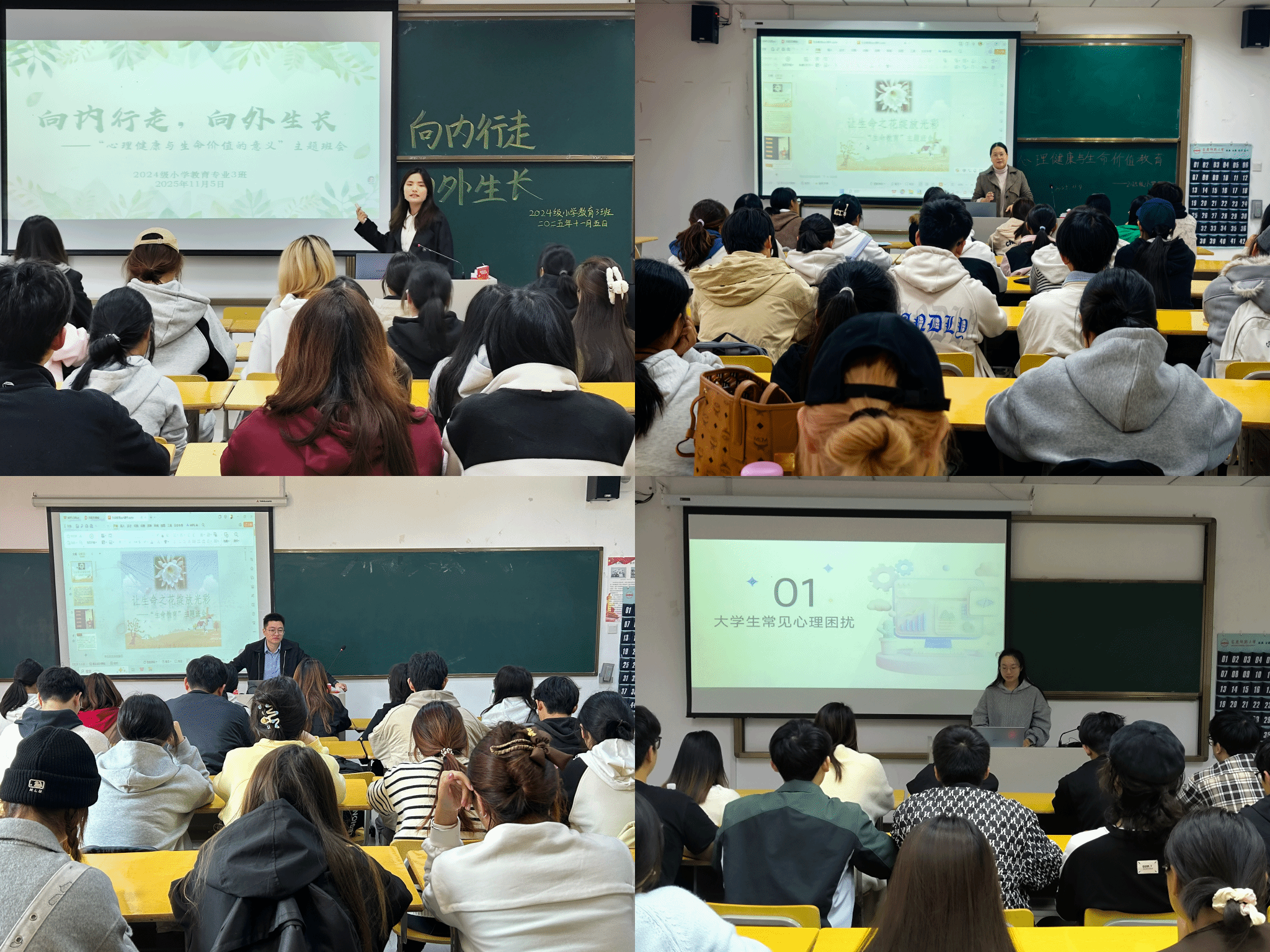 活动期间,学院各行政班积极响应,围绕“心理健康与生命价值教育”的主题开展班会。从“大学生常见心理困扰”的专题解析,到“向内行走,向外生长”的成长探索,再到“让生命之花绽放光彩”的深度探讨,各班通过案例分享、互动问答等丰富环节,引导学生直面成长困惑,在思想教育中深化生命价值认知,在交流互动中掌握心理调适与安全防护等实用技能,营造出“班班有特色、人人有收获”的良好育人氛围。