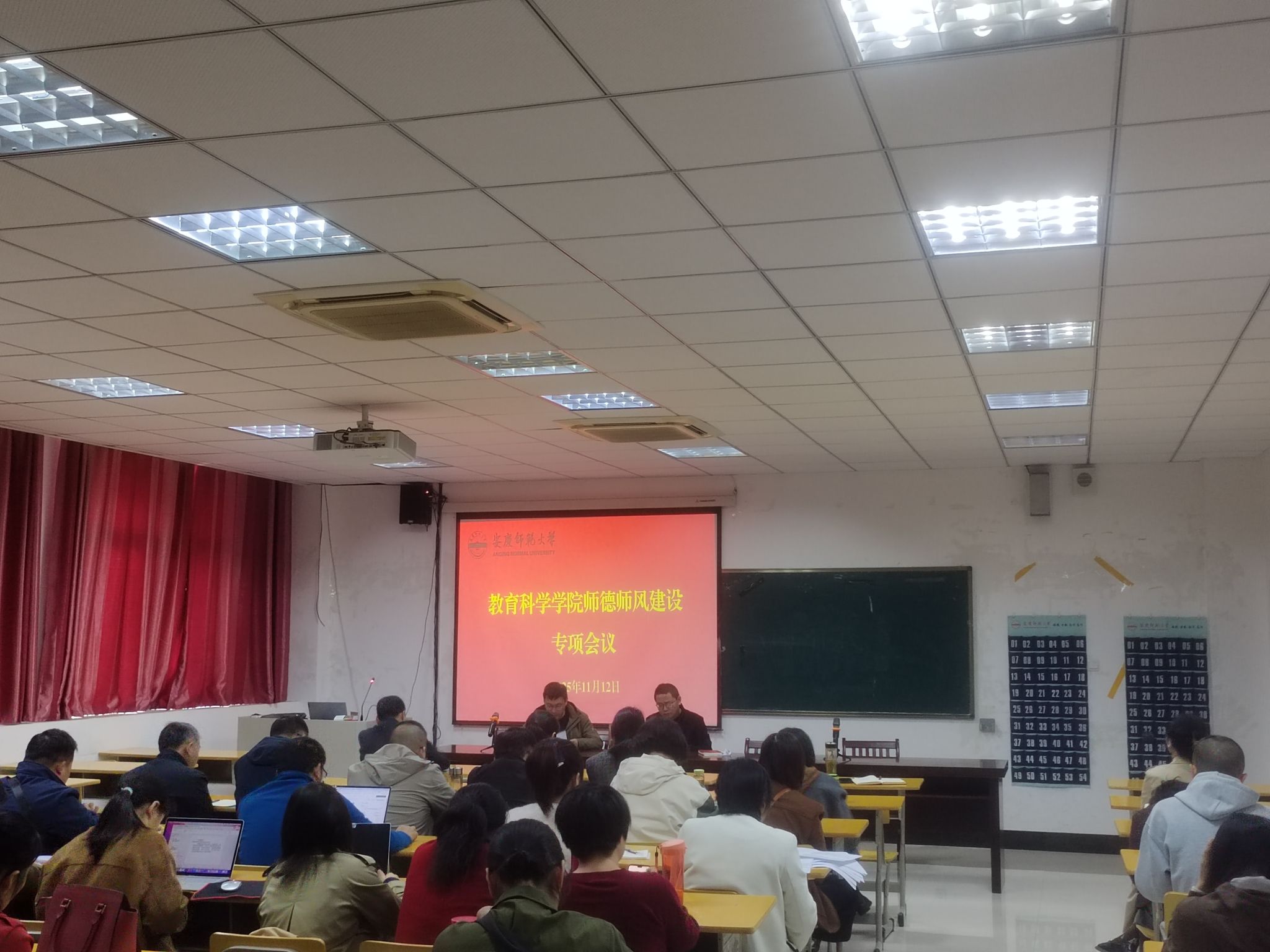 11月12日,365上市公司在J305会议室召开师德师风建设专项会议,学习习近平总书记关于教师队伍建设的重要论述,传达学校师德师风建设专项巡察动员部署会精神,通报违反师德师风典型案例,对学院开展的师德师风建设专项行动进行安排布置。学院领导班子成员、全体教职工参加会议。会议由学院党委书记何孔蛟主持。