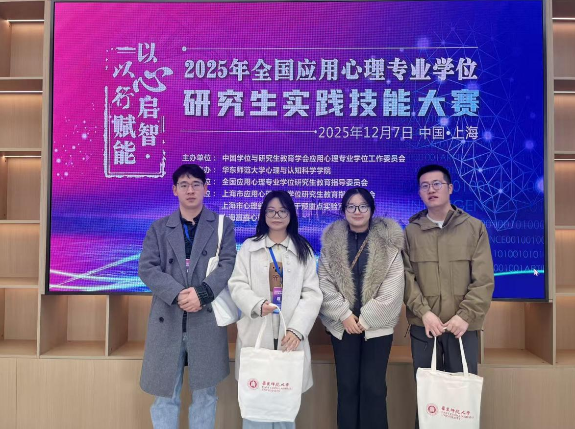 12月7日,2025年全国应用心理专业学位研究生实践技能大赛决赛在华东师范大学顺利举行。我院胡同文老师带领研究生程文彦、程玲、胡晓璇参加现场比赛。
