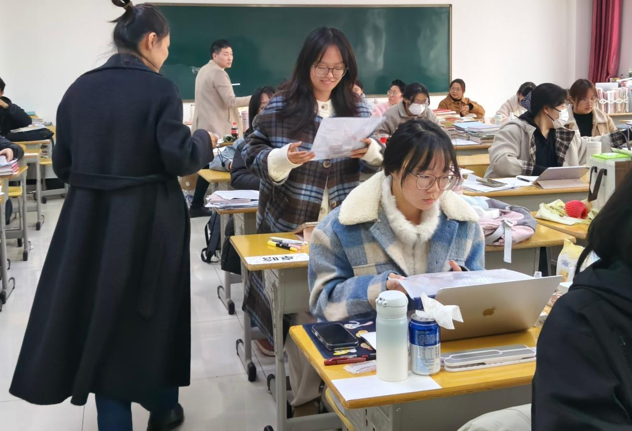 随后,许世平带领老师们为考研学子逐一分发包含定制文具、暖心咖啡的“考试加油包”,在送上实用物资的同时,也传递了学院的温暖关怀,收到“考试加油包”的学子们倍感温暖。学院的这份关怀十分及时,不仅缓解了大家的备考压力,更让学子们感受到学院大家庭的支持。
