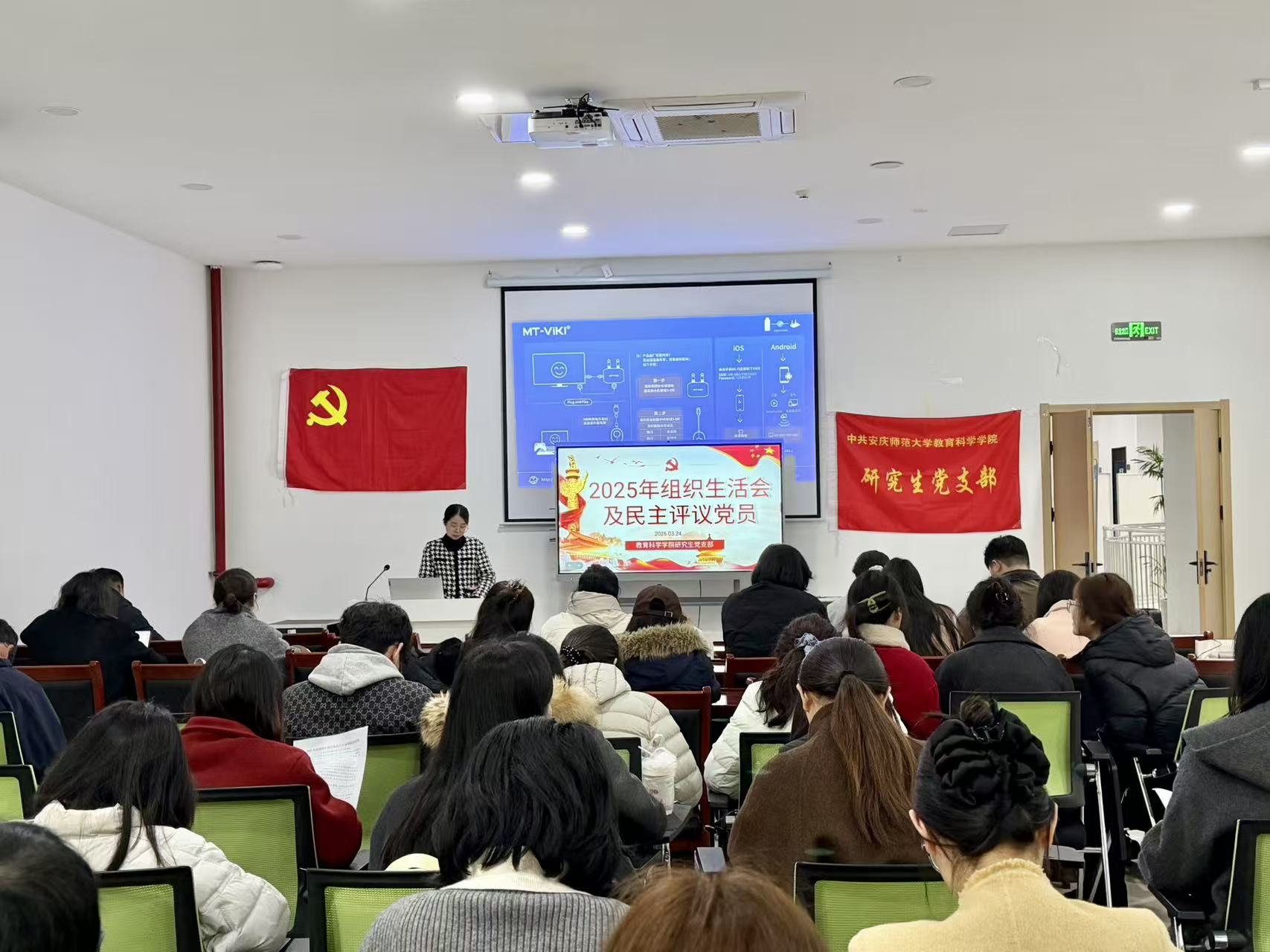 3月24日上午,研究生党支部在一站式服务中心二楼多功能厅召开2025年度组织生活会,并同步开展民主评议党员工作。会议由党支部书记后娇娇主持,及全体党员参会,学院党委委员、副院长王皓宇到会指导。