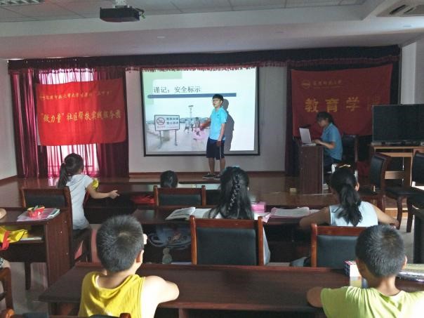 留守儿童由于从小缺少父母监管,在学习的自觉性和学习能力方面相对较差。在安庆市芭茅巷社区开展活动的过程中,实践服务团为帮助留守儿童解决在学习上的困难,给他们提供一个良好的学习氛围,于7月8日起启动“暑假作业周”计划,每天上、下午进行两个课时(共计四个半小时)的免费暑期作业辅导。在作业辅导的过程中,实践服务团队员们也尽量与孩子们多沟通交流,了解各方面的情况。