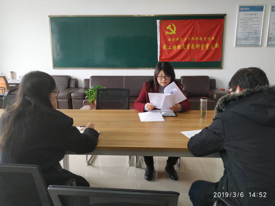 3月6日14:30,根据校党委和院分党委的统一要求,教工特殊教育教研室党支部在J411教室召开组织生活会和开展民主评议党员活动。