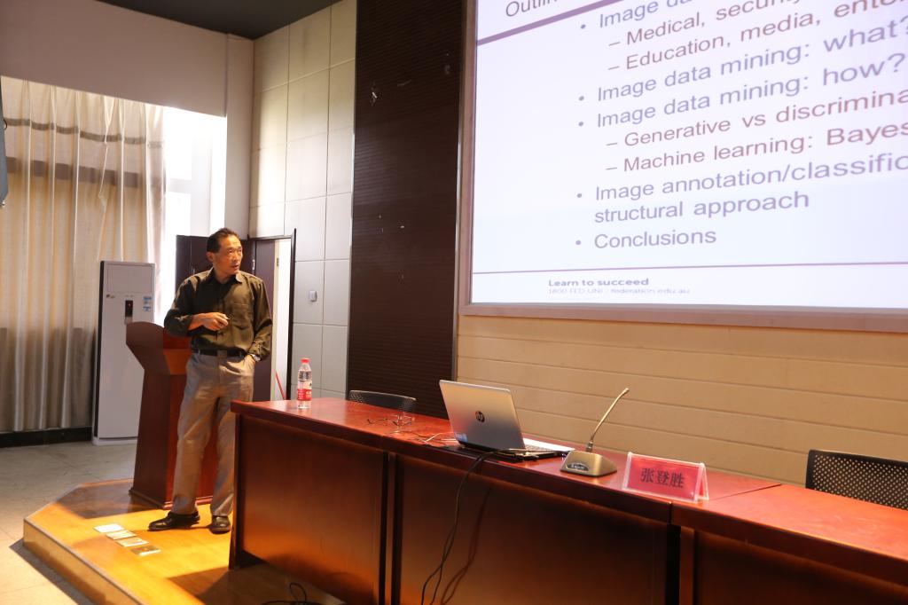4月15日下午,澳大利亚联邦大学张登胜博士应邀在龙山校区数学楼D111作“图像数据挖掘的方法和应用”的学术报告。报告由计算机与信息学院院长王一宾教授主持,计算机与信息学院、数学与计算科学学院、教师教育学院部分教师及相关方向的硕士研究生100余人聆听了报告。