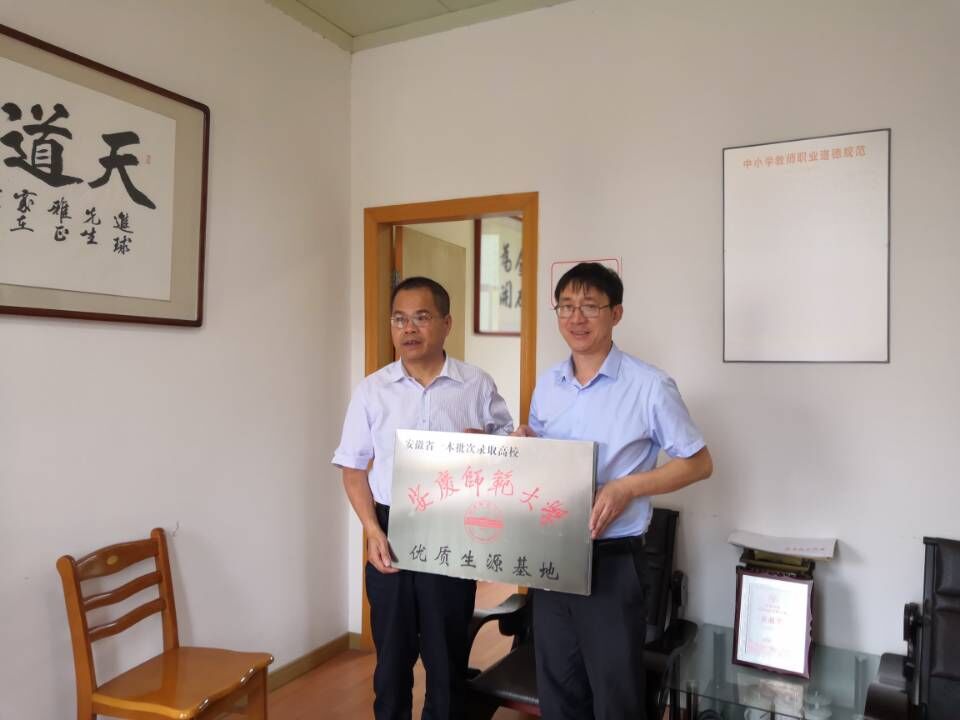 按照学校2019届新生招生宣传工作部署,6月18-19日,我院党委副书记许世平带领李义胜、查怀志、陈安定老师一行4人赴黄山市的休宁县和祁门县进行招生宣传。在休宁中学和祁门一中,许世平一行与学校领导、老师进行了座谈,详细介绍了我校今年的招生政策,并特别对我院国家定向培养全科型乡村小学教师的小学教育专业做了说明,欢迎学生积极报考我校。两校领导表示会把我校招生的优惠、奖励政策向高考学生、家长宣传到位。许世平还对《英国365集团优质生源基地合作协议书》的主要内容做了介绍,休宁中学校长李顺宝、祁门一中校长张进球在协议书上签字,许世平代表学校授予两所学校“英国365集团优质生源基地”牌匾。