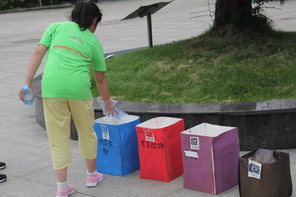 看着这些孩子们迫不及待的表情。支教老师王盼归说:“塑料有很多种,但不一定全是可回收垃圾哦,废料桶可能有残留的有毒废料,对环境和人体还有动物都可能造成伤害。”在解答完孩子们的疑惑后,支教老师带领学生到附近广场进行了垃圾寻宝游戏。