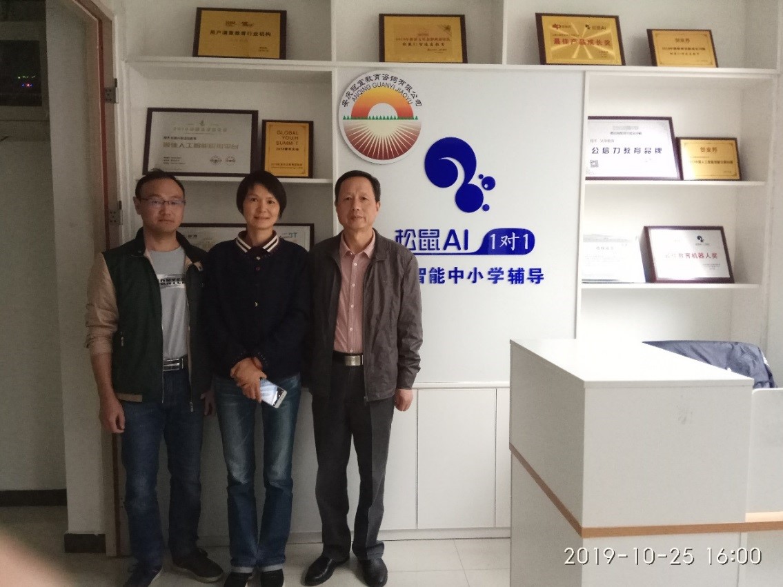 为更好地了解智慧教育,把握智慧教育,10月25日下午,教育技术学专业负责人韩建华教授在教研室韦老师陪同下,前往安庆市经济技术开发区冠宜文化素质教育培训学校开展调研,受到该校校长喻红的热情欢迎。