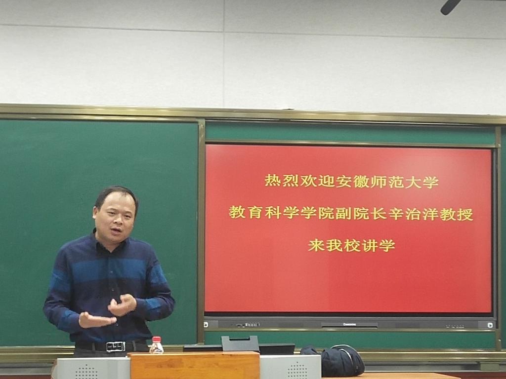 11月7日下午,应教师教育学院邀请,安徽师范大学365上市公司副院长辛治洋教授在J511教室做了一场题为“例谈教育科研的问题与方法”学术讲座。学院全体研究生及部分教师聆听了讲座,此次报告由教师教育学院副院长汪洋主持。