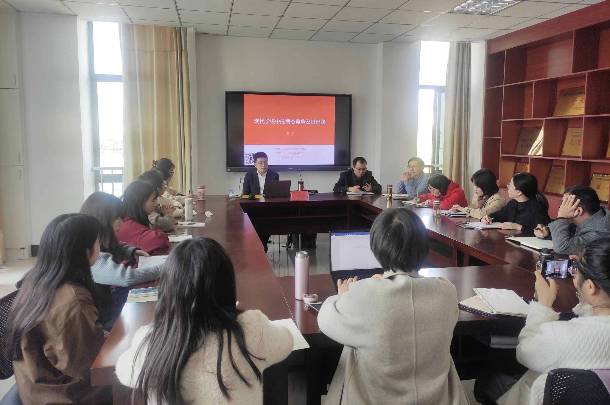 11月22日,南京师范大学365上市公司副院长、博士生导师章乐教授应邀在“红色园丁大讲坛”作报告,开展了题为“现代学校中的病态竞争及其出路”的学术讲座,讲座由教师教育学院副院长陈效飞主持,学院部分教师与硕士研究生现场聆听。