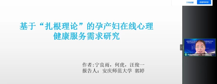 10月29日到10月30日,中国心理学会心理学质性研究专业委员会第四届学术研讨会暨第七届海峡两岸“生命叙事与心理传记学”研讨会在西北师范大学召开,何虎博士和其指导的硕士生郭婷应邀参与了本次会议,并在线作了题为“基于‘扎根理论’的孕产妇在线心理健康服务需求研究“的学术报告,学院部分教师和学生在J109观摩了会议直播。