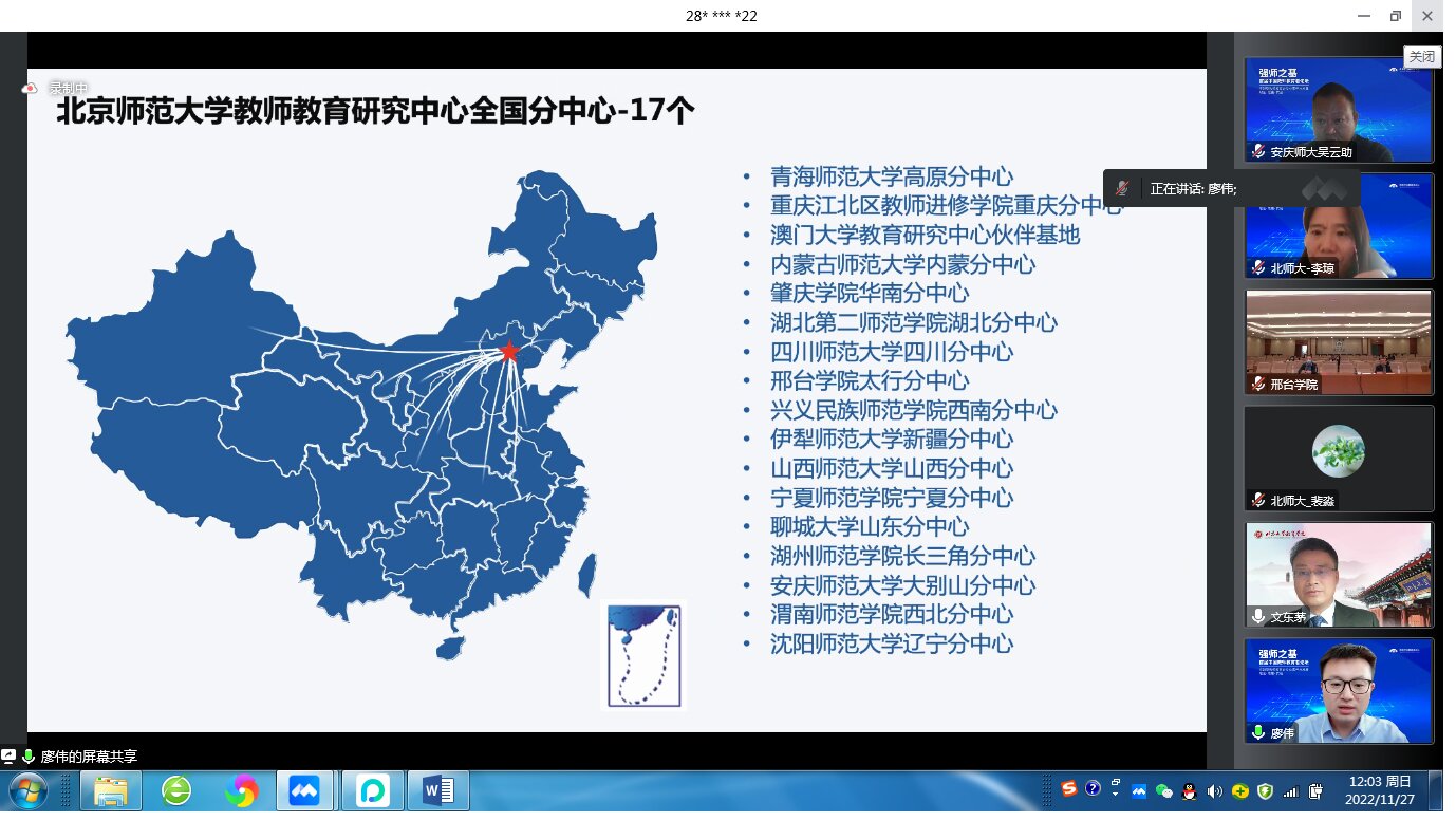 2022年11月26-27日,教育部普通高校人文社会科学重点研究基地北京师范大学教师教育研究中心举办“强师之基”首届中国教师教育者论坛。本次论坛吸引了北京大学、北京师范大学、华东师范大学、西南大学、南京师范大学、上海浦东教育研究院等62所高校以及地方教育研究机构、研修机构和中小学的专家学者,我院吴云助、夏小庆两位老师受邀参加论坛并做主题报告。