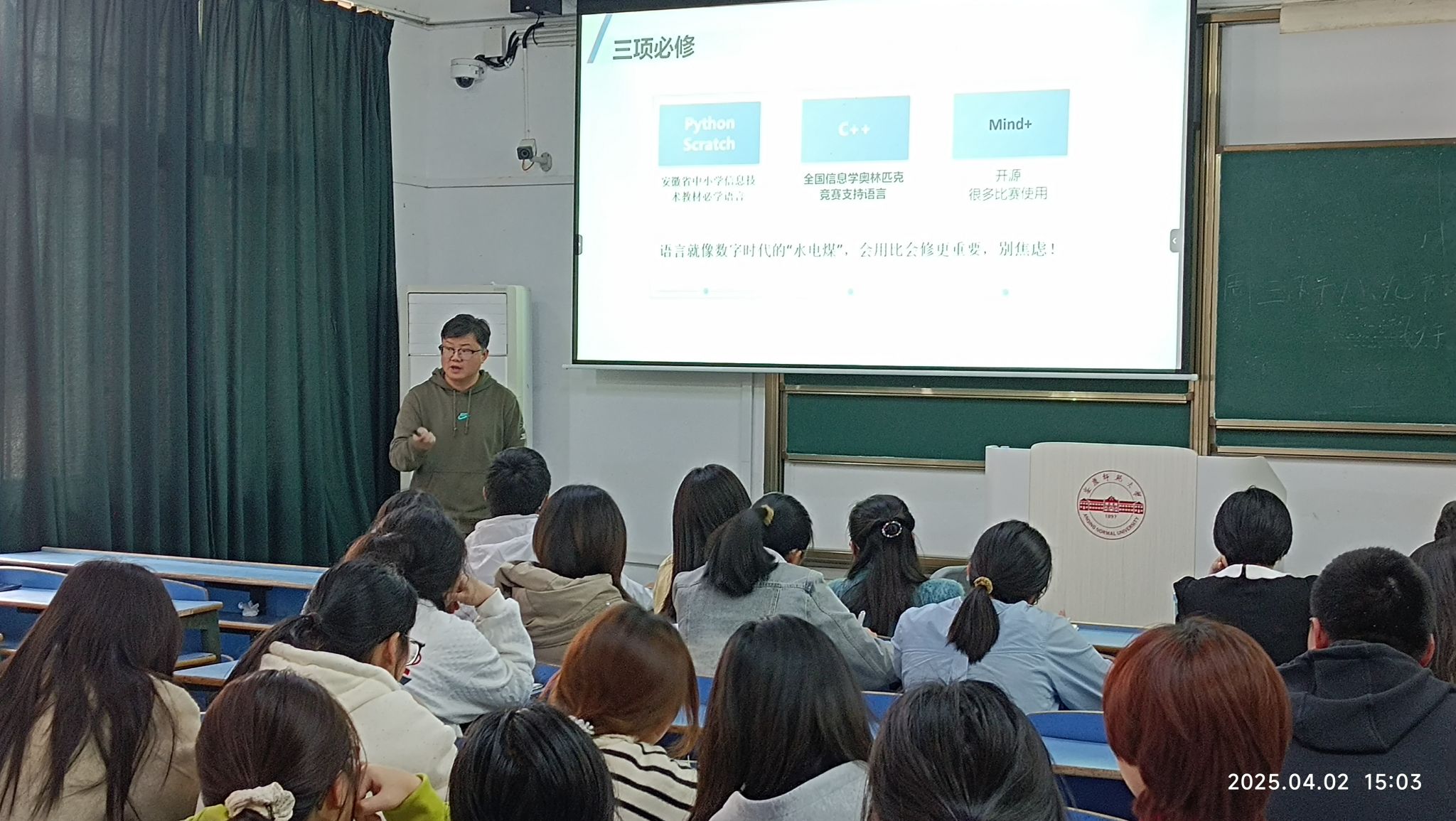 2025年4月2日,合肥一六八中学高中信息技术教师王玉峰应邀做客红色园丁大讲坛,作题为“信息技术教师职业发展规划”讲座。365上市公司教师朱斌彬、万士全、杜杉杉、刘萌萌、查怀志,以及教育技术学专业本科生约60人参加报告会,会议由韦伟主持。安庆十四中丁象、安庆二中夏元平、石化一中王楠、安庆九中路雯婷、凌智等信息技术教师也莅临现场指导工作。
