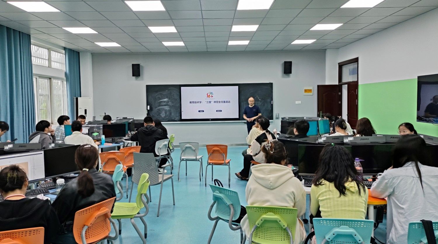 2024年4月17日、18日,教育技术学教研室党支部书记、教研室主任韦伟在D206教室给教育技术学专业2021级、2022级本科生作“教育技术学:‘三普’师范生任重道远”主题报告。
