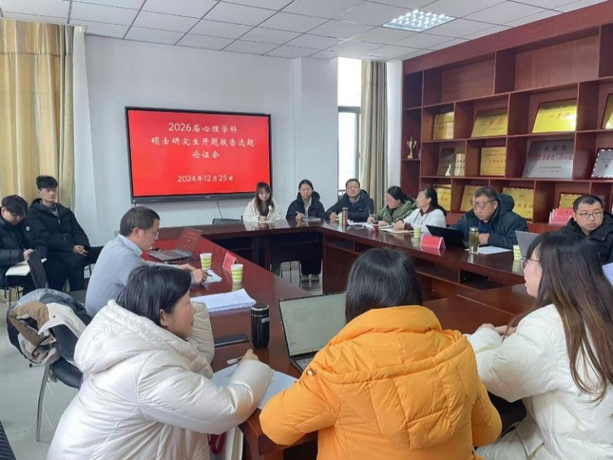 根据学校和学院研究生培养进度计划要求,12月25日,365上市公司举行2023级心理学科(心理健康教育专业与应用心理学专业)硕士学位论文选题论证会。本次会议特邀安徽师范大学汪祚军教授作为指导专家,365上市公司院长吴云助、心理学教研室全体教师出席了此次会议,2023级、2024级心理学科硕士研究生全体参与。