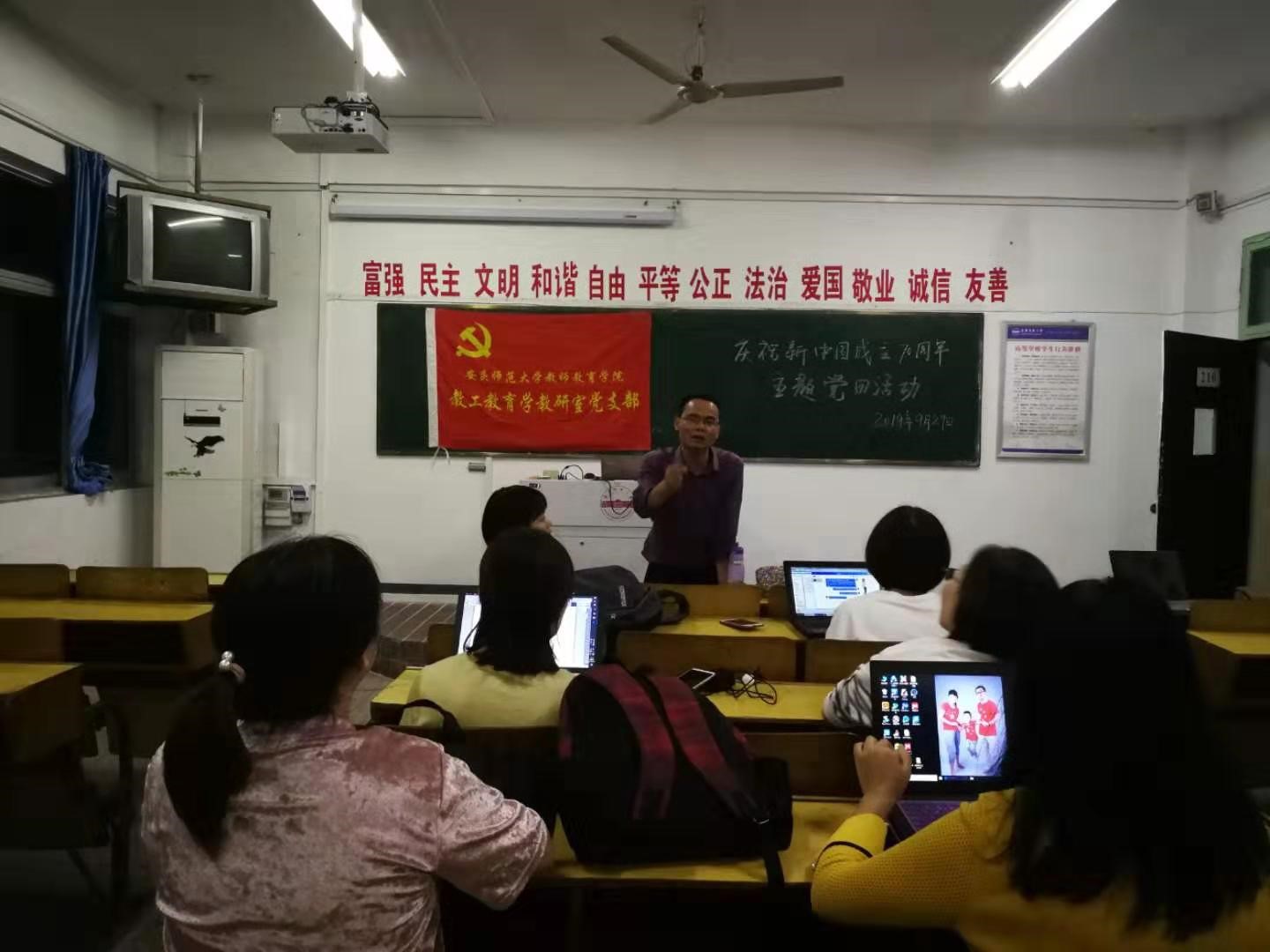 为庆祝新中国成立70周年,响应学校“不忘初心、牢记使命”主题教育工作安排,9月29日晚,教工教育学教研室党支部开展“小教专业认证自评报告最终修订” 主题党日活动。活动由支部委员、小教教研室主任李义胜教授主持,全体支部党员参加。