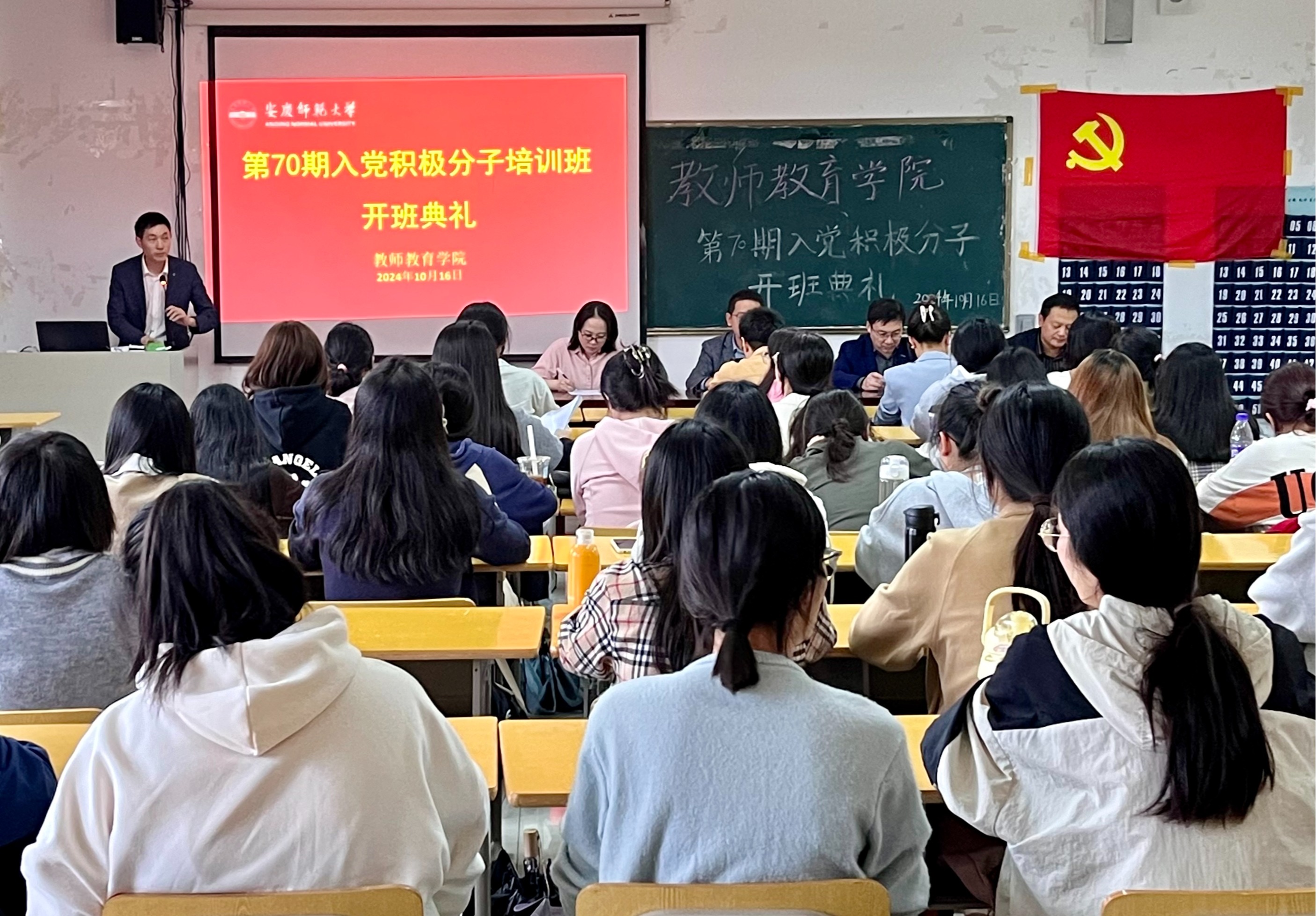 10月16日,我院在J305会议室举行第70期入党积极分子培训班开班典礼暨培训班第一次党课。学院党委书记何孔蛟,党委副书记许世平,党委委员、副院长诸园、王皓宇,各学生党支部书记及第70期入党积极分子全体成员参加,开班典礼由培训班班主任汪洋洋主持。