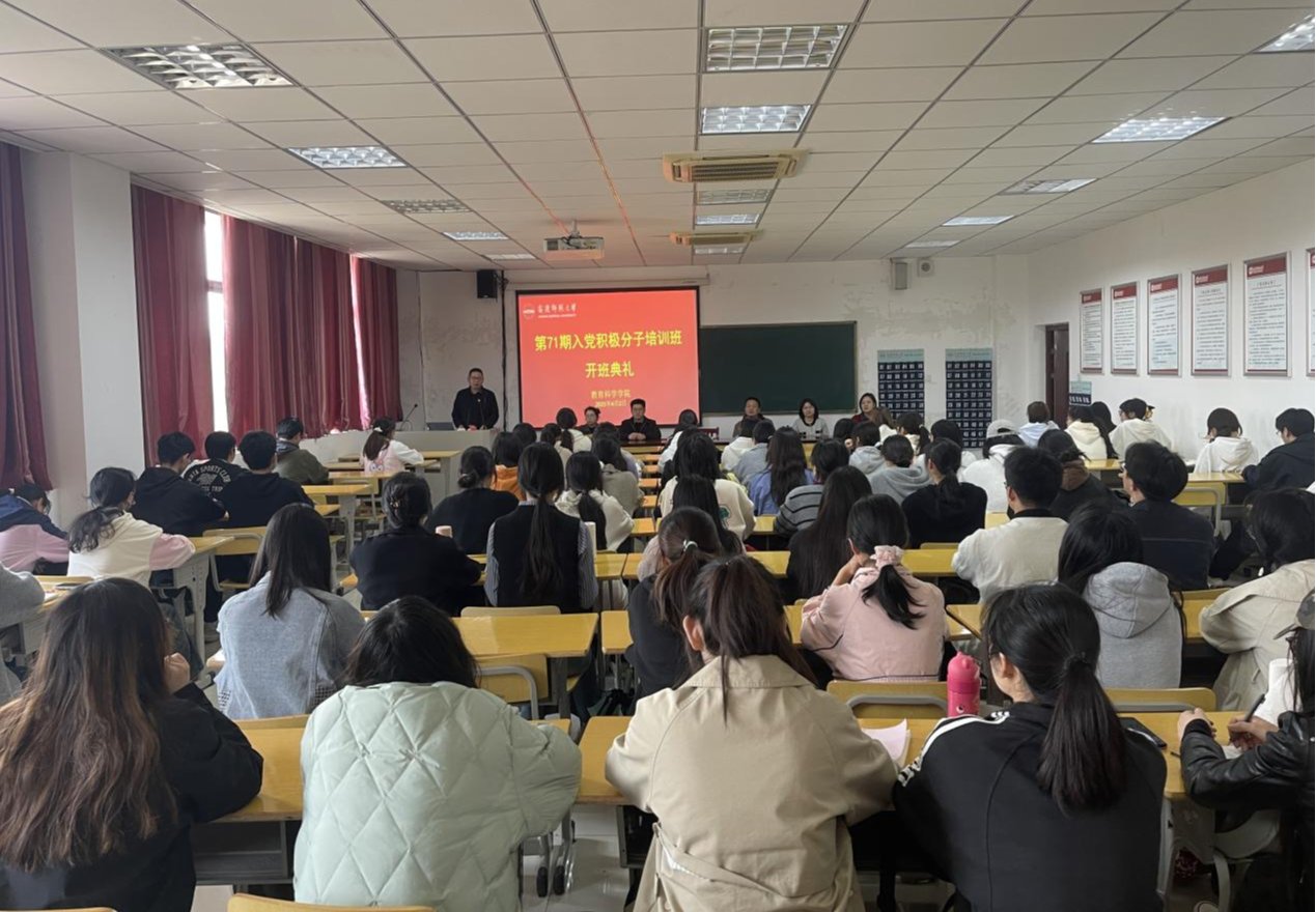 4月2日,我院在J305会议室举行第71期入党积极分子培训班开班典礼暨培训班第一次党课。学院党委书记何孔蛟,党委委员、副院长王皓宇,各学生党支部书记出席培训会。第71期全体入党积极分子参加培训会。开班典礼由培训班班主任汪洋洋主持。