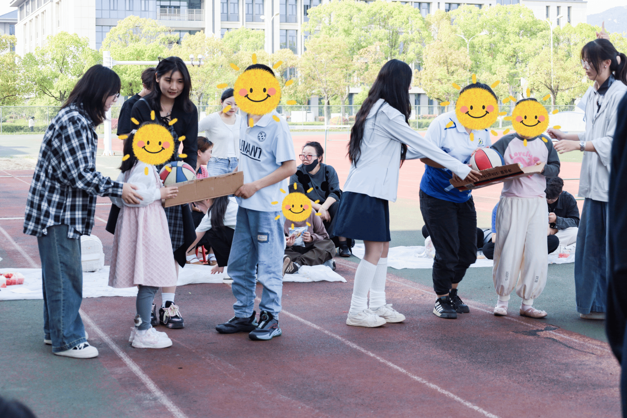 趣味游戏让欢乐持续升温。“趣味运球”中,志愿者根据孩子的运动协调能力调整节奏,用鼓励性语言引导其稳步前行;“套圈”环节,志愿者适时给予技巧提示,让孩子们在收获成功时绽放如春日暖阳般的笑容;“抓尾巴”的追逐嬉戏里,志愿者们化身“守护者”,既守护孩子的安全,也守护其蓬勃的活力。尾声“圈定美好”环节,师生与孩子们并肩而立,将春光与快乐尽数收藏,校园里处处洒满少年鲜活的身影。