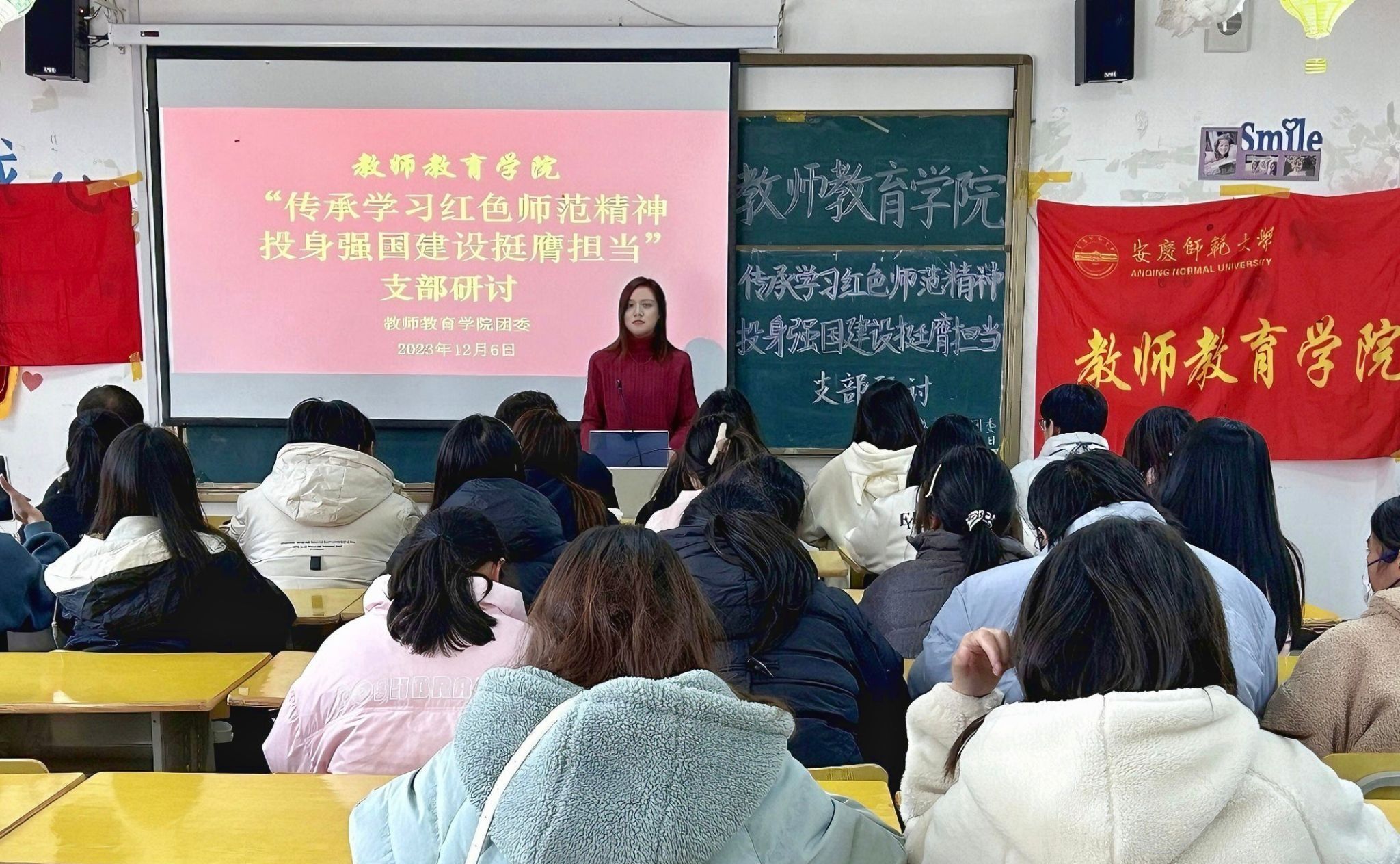 会议伊始,姚强诚介绍“青年马克思主义者培养工程”培训班的重要意义,要加强思想教育,培养当代青年积极投身“中华民族伟大复兴”的生动实践。院团委学生副书记熊远志以“弘扬红色师范精神,投身强国建设挺膺担当”为题,讲述了红色师范精神的内涵,并对青年如何弘扬红色师范精神做出回答。院团委实践委员叶伊林带领同学们学习《习近平:加快建设教育强国 为中华民族伟大复兴提供有力支持》。22级应用心理学2班团支书袁畅和23级学前教育2班团支书汪南也就“红色师范精神”进行分享交流。