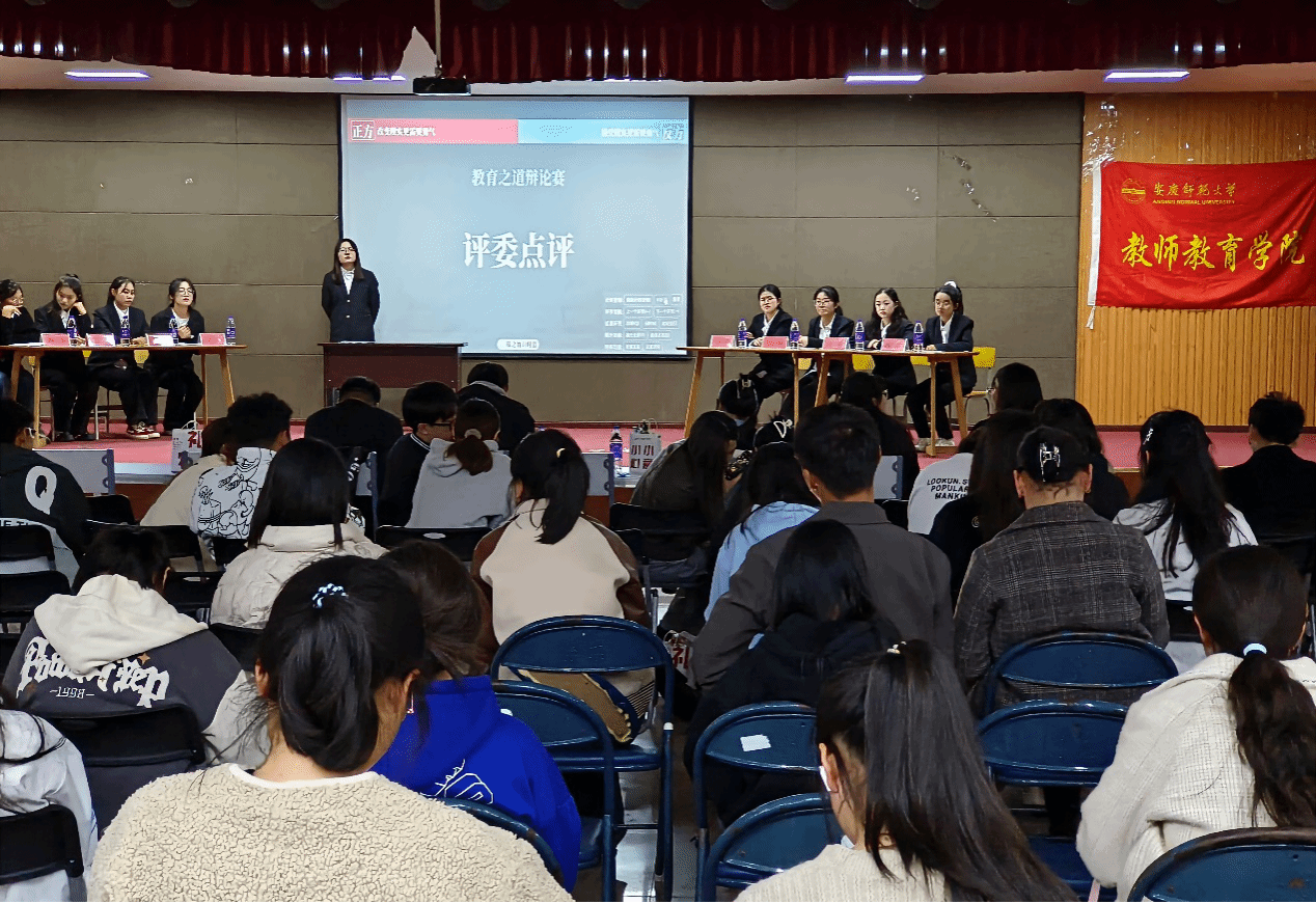 11月22日,我院于龙湖食堂三楼报告厅举办“教育之道”辩论赛总决赛,院团委学生副书记俞燕、实践委员熊远志,主席团主席助理洪俊杰出席活动,多名校辩论赛获奖选手及校辩论队成员担任评委,来自各学院的150余名同学到场观摩。