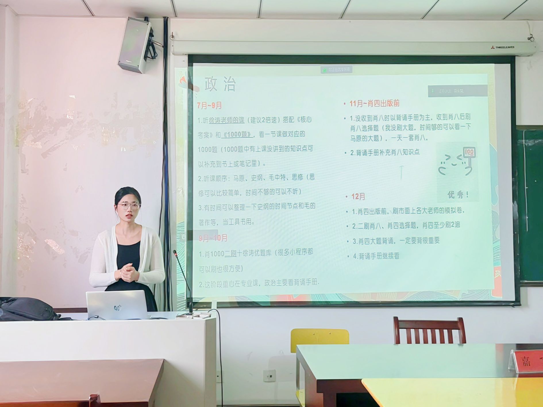 5月22日,为进一步促进学风建设,院团委于J305教室开展考研经验分享。