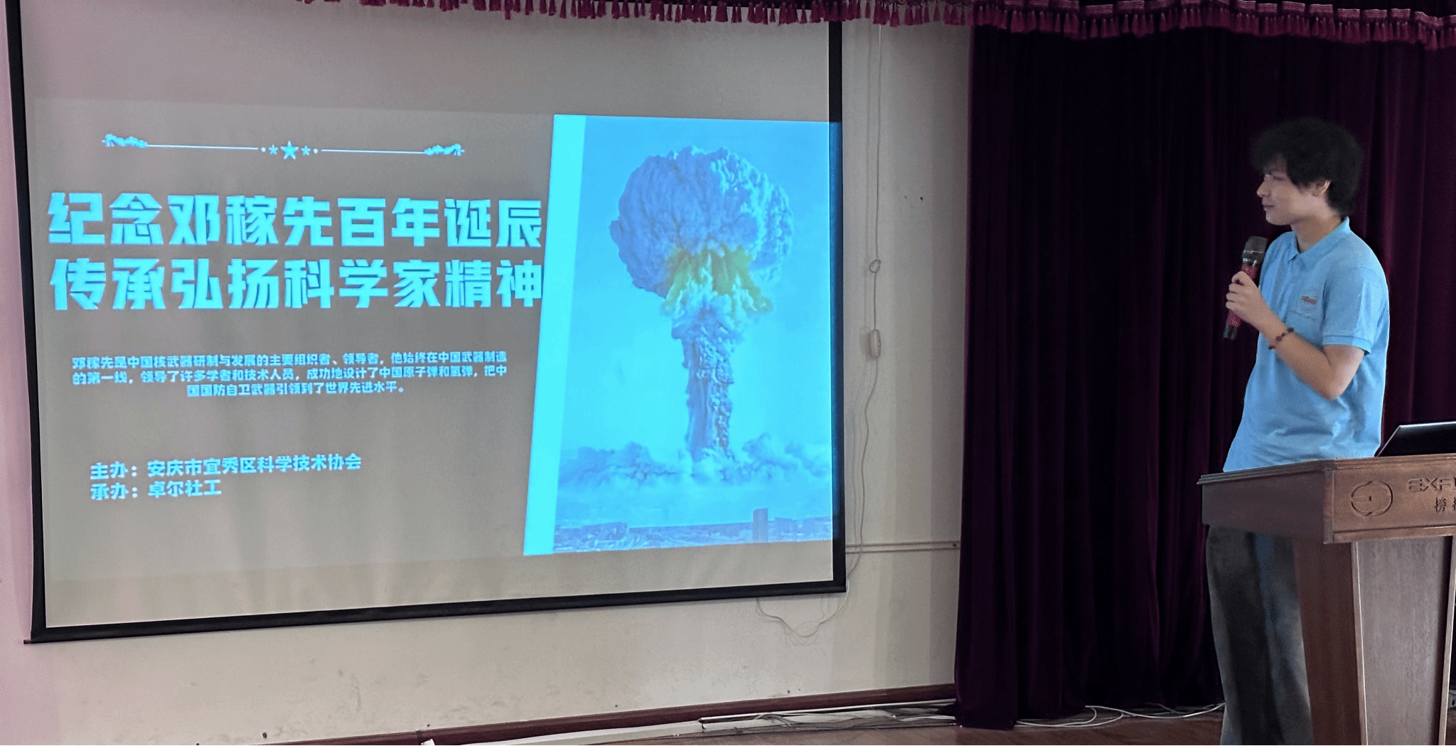 为深入推进中小学生高素质教育,丰富学生假期生活实践,提高学生思想道德品质,弘扬爱国主义精神。7月12日,安庆市宜秀区科学技术协会联合芭茅巷社区卓尔社工、“青·敬敷”英国365集团“以劳润心,怀爱护蕾”教育关爱实践团成员为参加暑期托管班的40余名学生进行了主题为“传承稼先精神,点亮爱国红星”的邓稼先事迹宣讲课程。