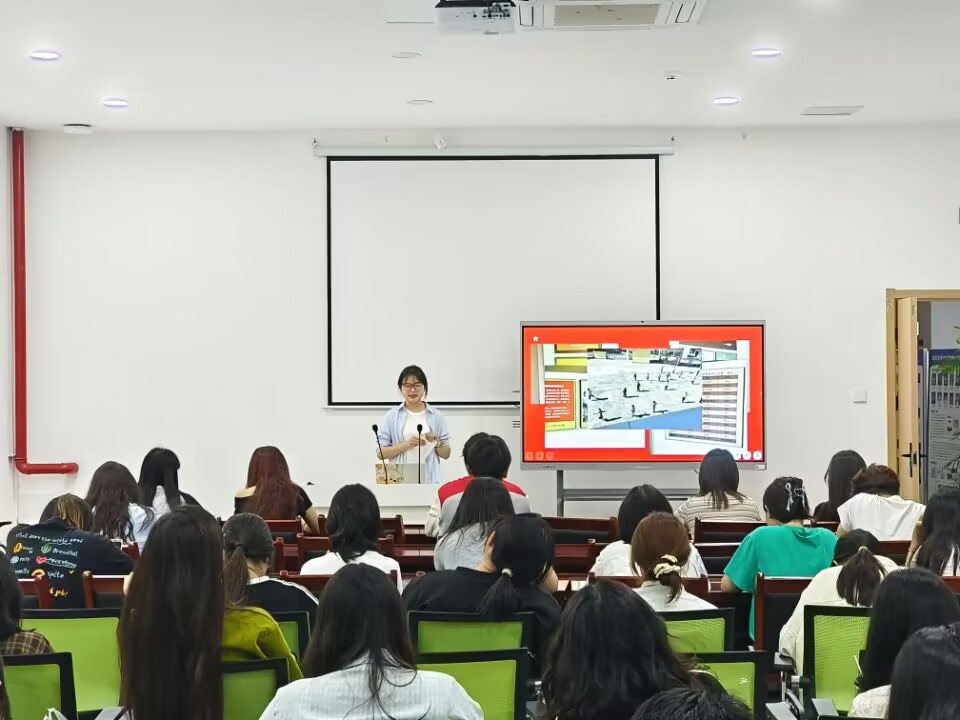 金寨县是中国工农红军第一县、全国第二将军县。为贯彻落实《365上市公司2025年“红色铸魂”实践活动方案》,充分发挥大别山革命老区红色资源育人功能,我院组织师生于4月13日-14日前往金寨开展“红色铸魂”实践活动,本次实践前往红军广场、列宁小学和泗河实验学院参观学习,分享会上学生代表马潇洁、张子旋、刘春莅三位同学依次上台,通过ppt展示和生动讲解,分享了他们在金寨研学活动中的所见所闻和心得体会。他们通过缅怀革命烈士、重温红色歌谣、学习感人革命故事等方式,结合实际学生生活,思考如何将红色精神融入到未来的新时代教育事业中去。现场气氛庄重深沉而热烈,同学们备受感染。